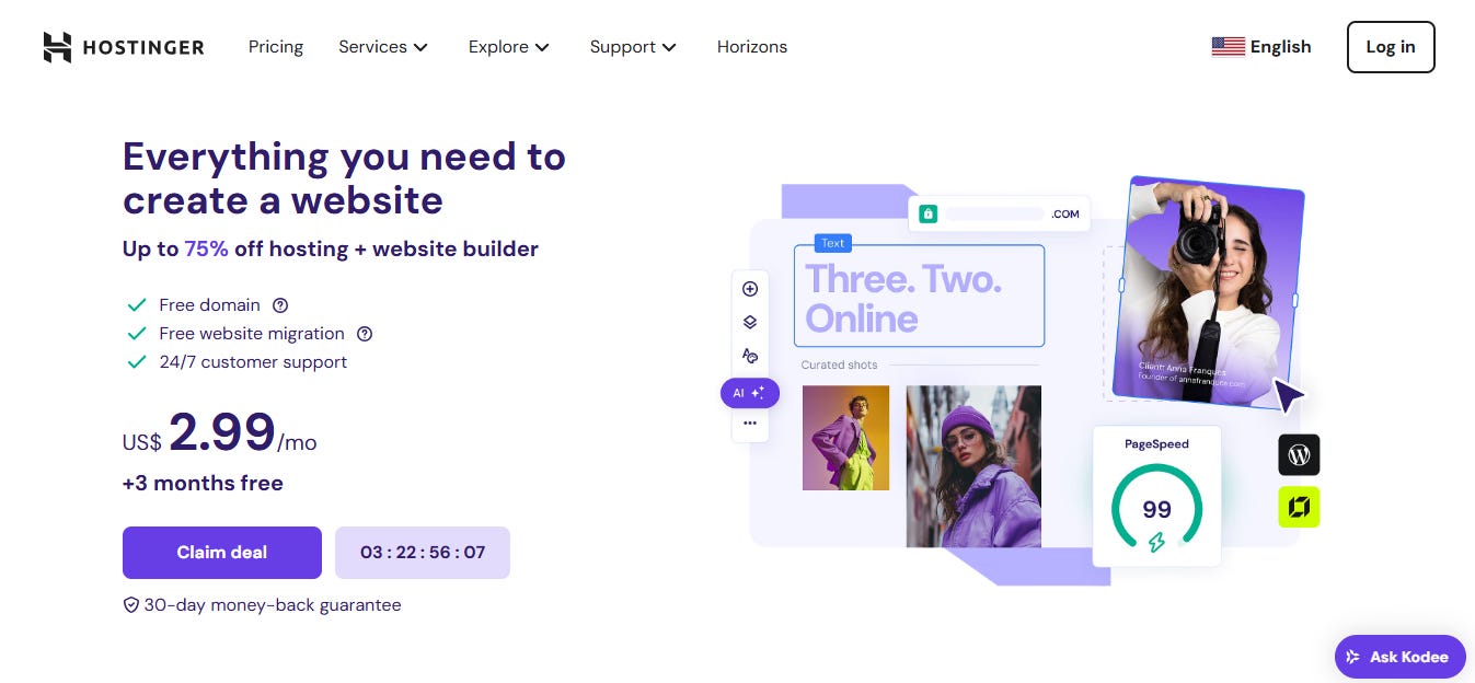 I’ve used several hosting providers over the years… some good, some awful, some that made me question my life choices. Hostinger stood out because it balances power and simplicity. It's beginner-friendly without being "dumbed down," and it doesn't charge a fortune to do what 90% of solopreneurs need(Starting at just $2.99/month).